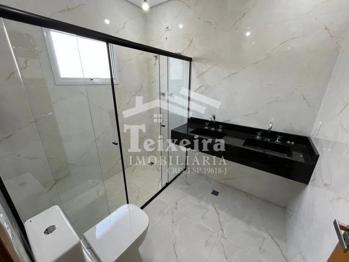 O imóvel oferece uma sala ampla, perfeita para dois ambientes, cozinha integrada à sala de jantar, além de corredor lateral que garante praticidade no dia a dia. Nos fundos, um quintal espaçoso com churrasqueira proporciona um ótimo espaço para lazer e convivência.(abrir)A garagem acomoda até 4 veículos e conta ainda com quartinho de despensa, ideal para organização e armazenamento.(fechar)(abrir)Na área íntima, o sobrado dispõe de 3 suítes, sendo 2 com varanda e 1 suíte master com closet, oferecendo conforto e privacidade.(fechar)(abrir)Trata-se de um imóvel novo, nunca habitado, com acabamentos de alto padrão, pronto para receber sua família com muito estilo e qualidade.